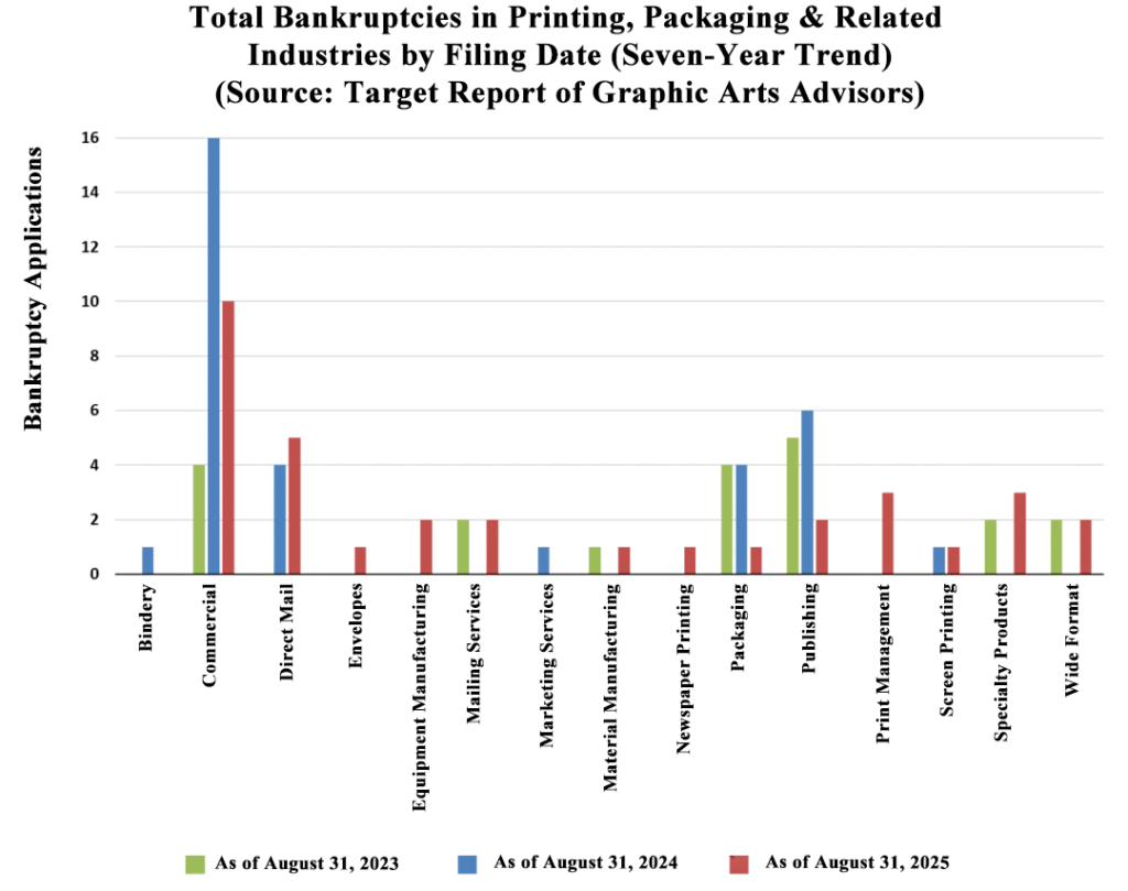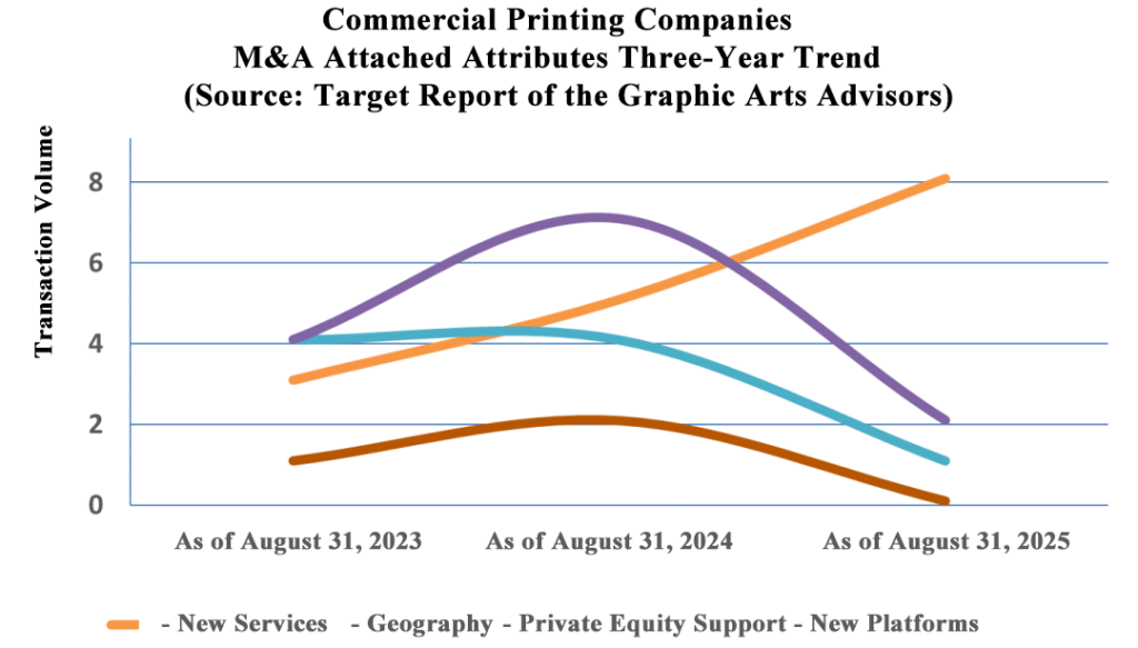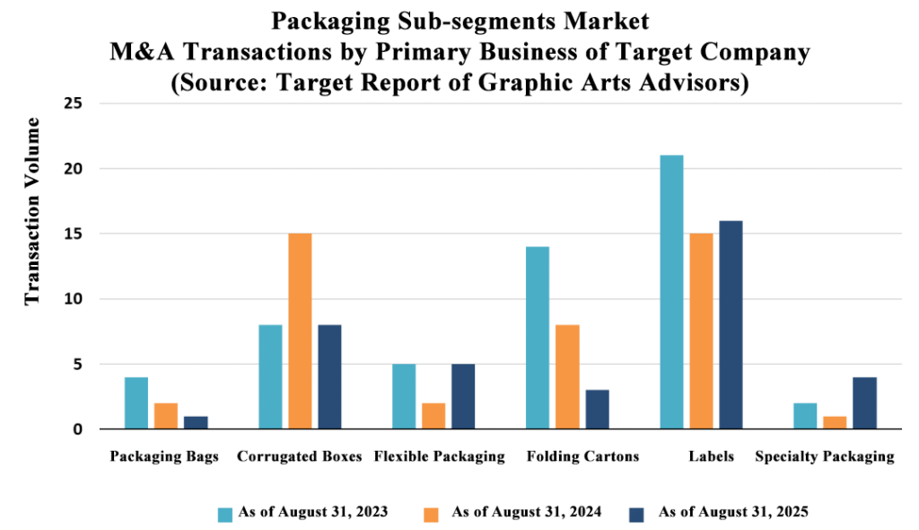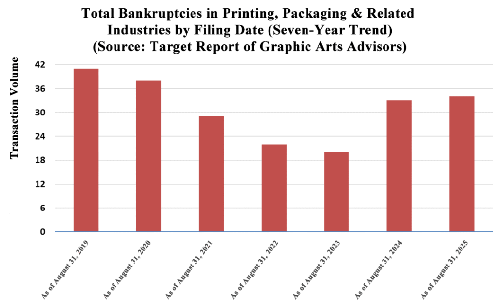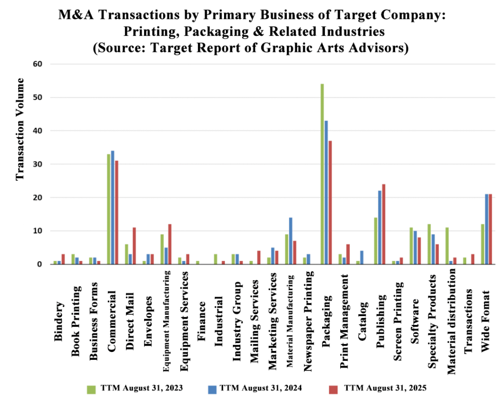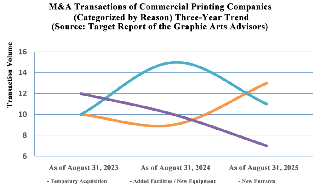 Graphic Arts Advisors (GAA) recently released the annual Merger & Acquisition (M&A) activity data, which covers commercial printing, packaging (labels, folding carton, flexible packaging), and wide-format graphics. The latest data, spanning the 12 months up to August 31, 2025, reveals an industry undergoing a significant structural shakeup, characterized by both sustained consolidation and a notable surge in distress.